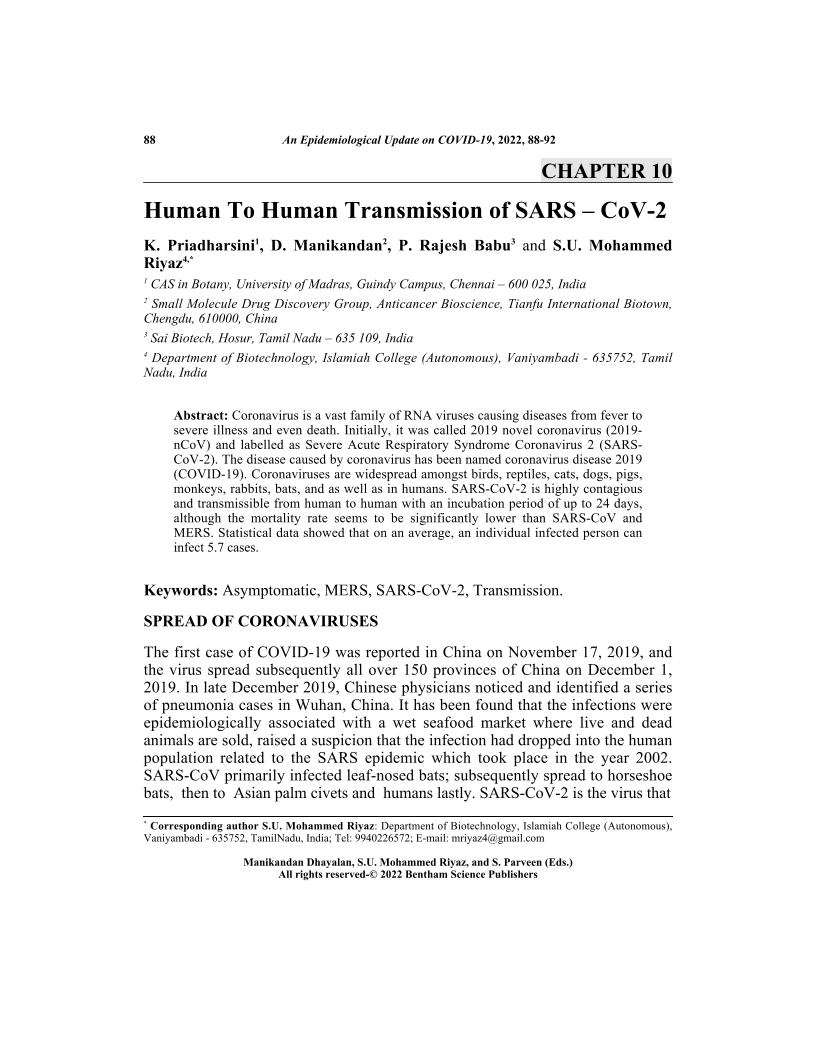 Human To Human Transmission of SARS – CoV-2, Page 1 of 1