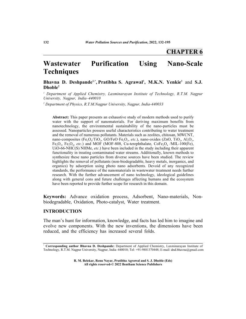 View Affiliations Hide Affiliations1 Department of Applied Chemistry, Laxminarayan Institute of Technology, R.T.M. Nagpur University, Nagpur, India44001 2 Department of Applied Chemistry, Laxminarayan Institute of Technology, R.T.M. Nagpur University, Nagpur, India44001 3 Department of Applied Chemistry, Laxminarayan Institute of Technology, R.T.M. Nagpur University, Nagpur, India44001 4 Department of Physics, R.T.M.Nagpur University, Nagpur, India 440033