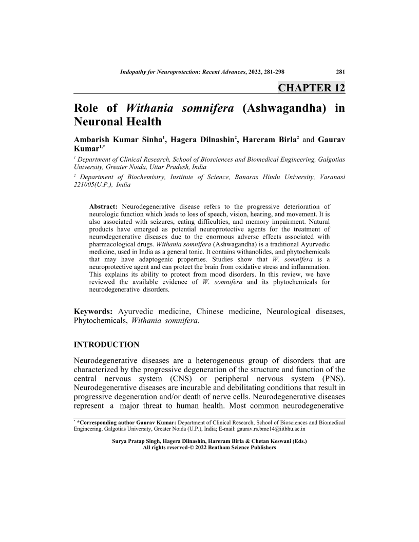 - Source: Indopathy for Neuroprotection: Recent Advances , pp 281-298
