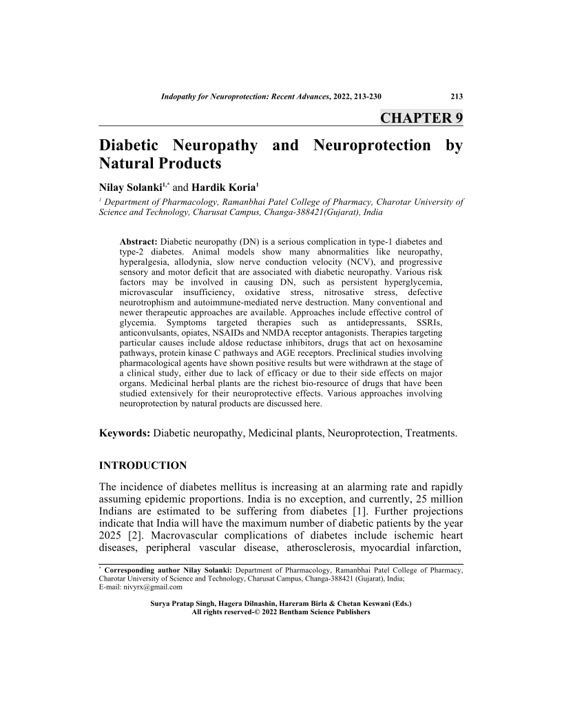 Diabetic Neuropathy and Neuroprotection by Natural Products, Page 1 of 1