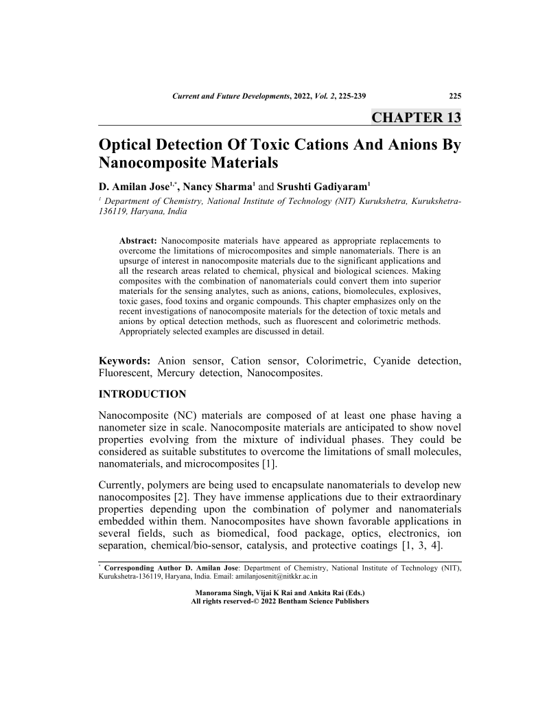Optical Detection Of Toxic Cations And Anions By Nanocomposite Materials, Page 1 of 1