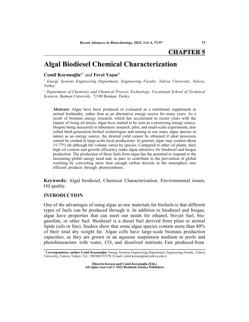 - Source: Algal Biotechnology for Fuel Applications , pp 73-97