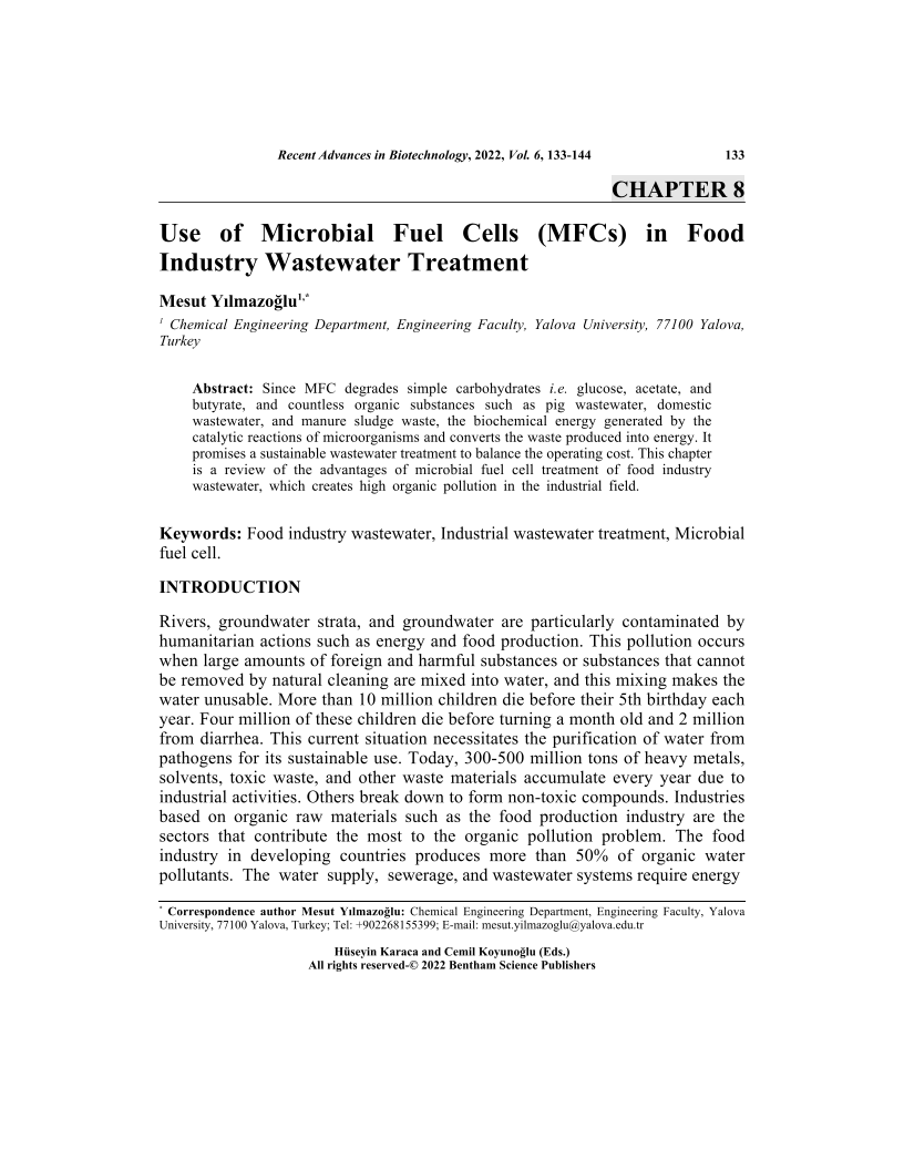Use of Microbial Fuel Cells (MFCs) in Food Industry Wastewater Treatment, Page 1 of 1