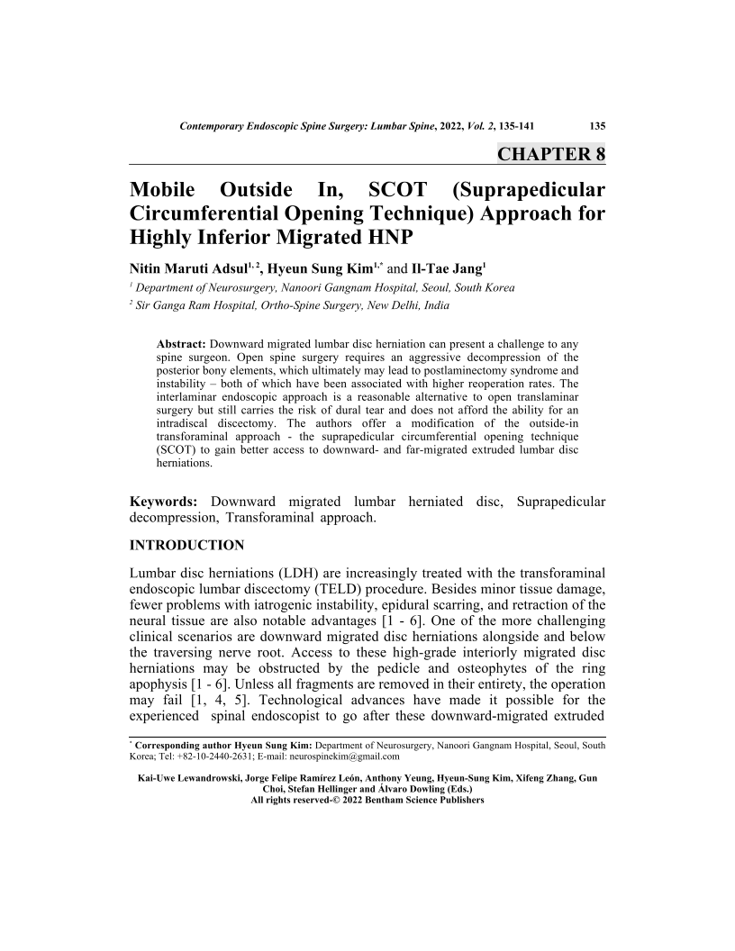 Mobile Outside In, SCOT (Suprapedicular Circumferential Opening Technique) Approach for Highly Inferior Migrated HNP, Page 1 of 1