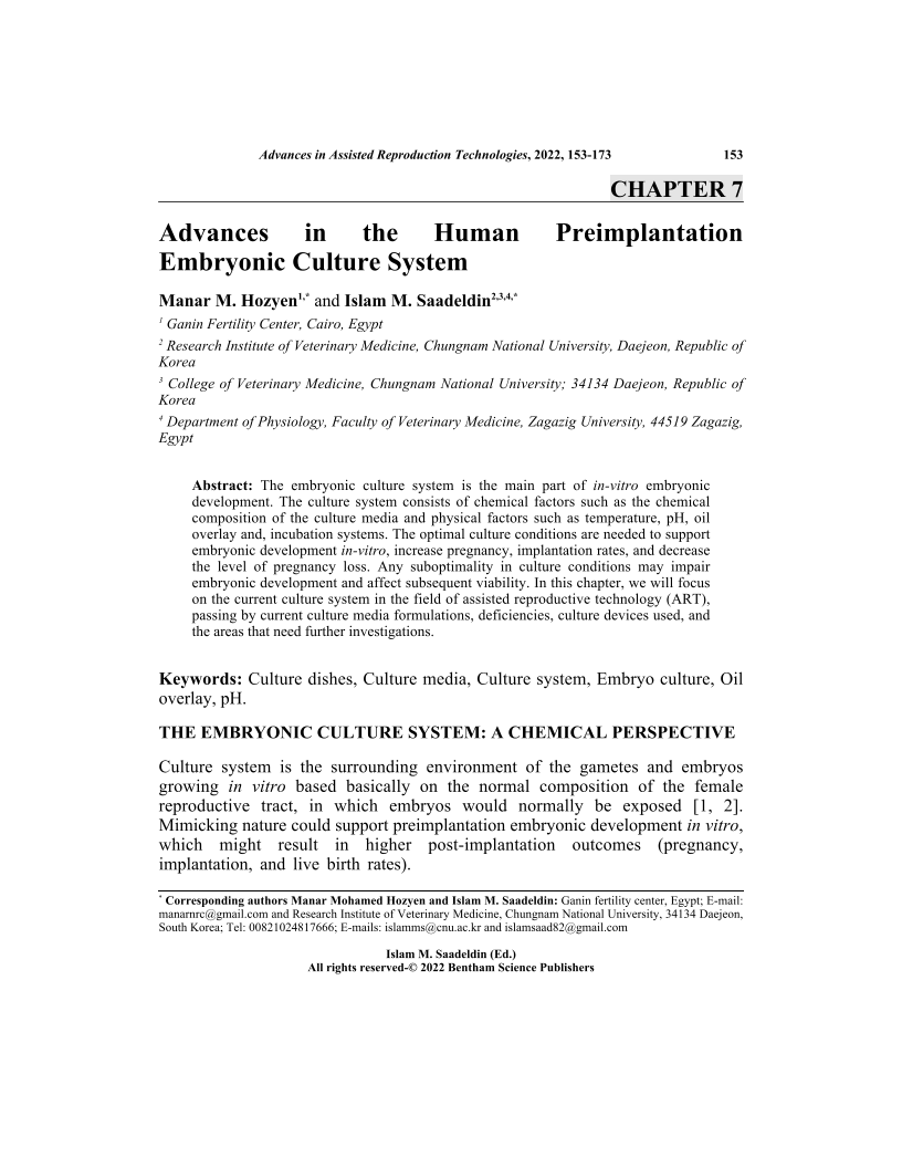 Advances in the Human Preimplantation Embryonic Culture System, Page 1 of 1