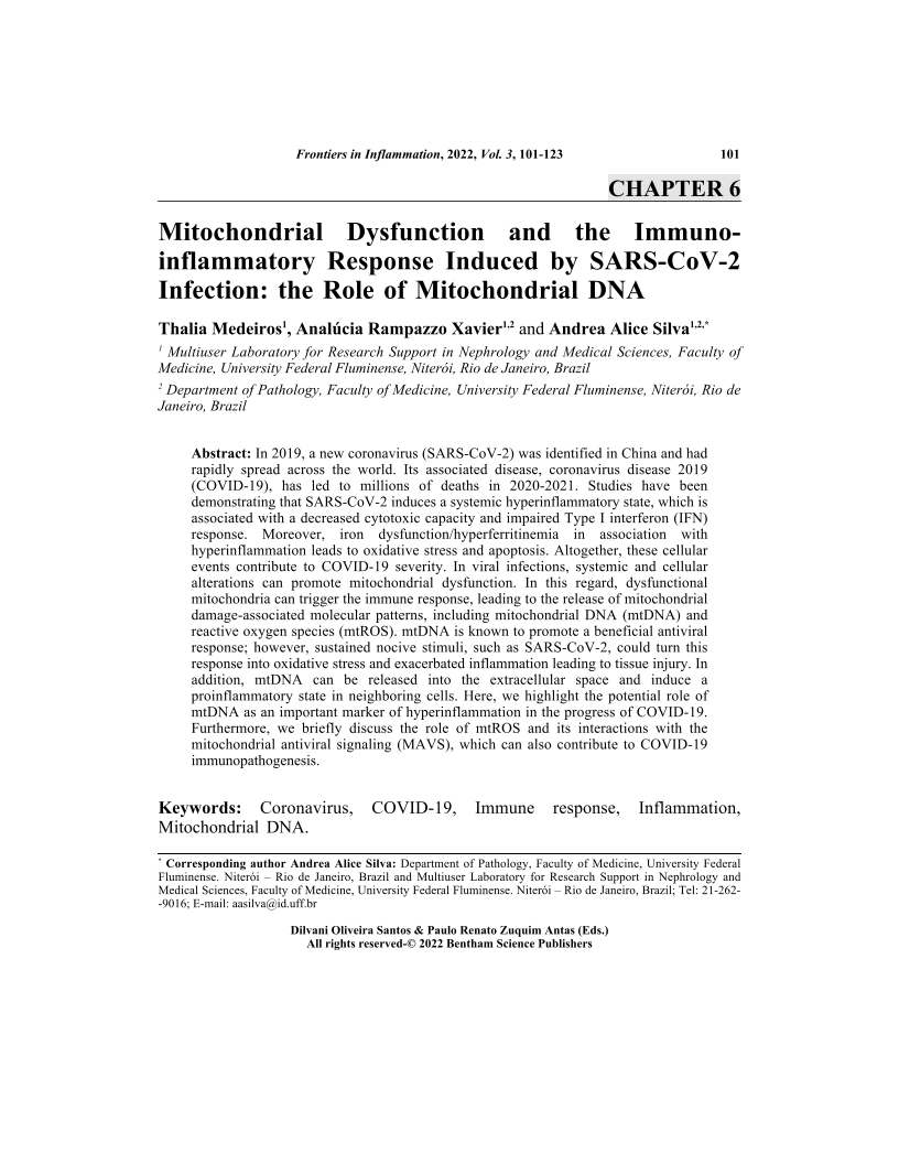 Mitochondrial Dysfunction and the Immuno-inflammatory Response Induced by SARS-CoV-2 Infection: the Role of Mitochondrial DNA, Page 1 of 1