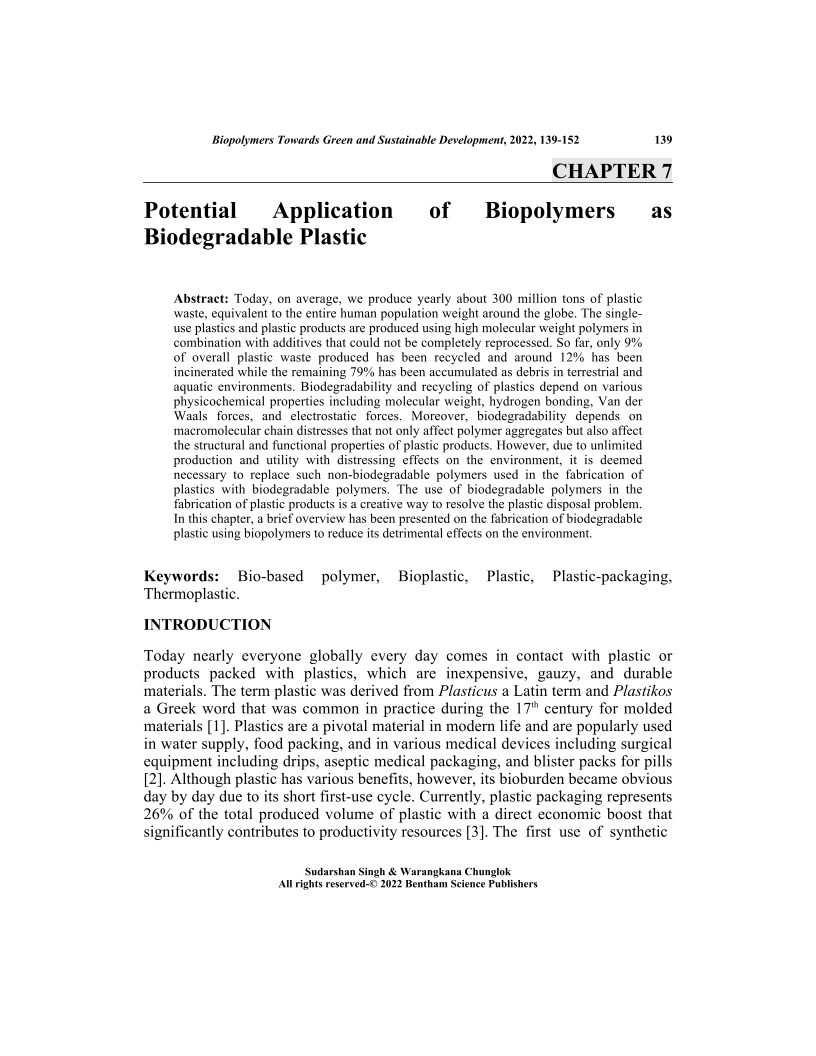 - Source: Biopolymers Towards Green and Sustainable Development , pp 139-152