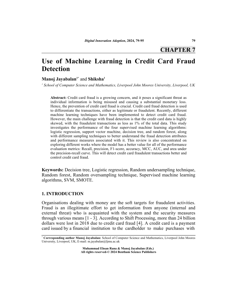 Use of Machine Learning in Credit Card Fraud Detection, Page 1 of 1