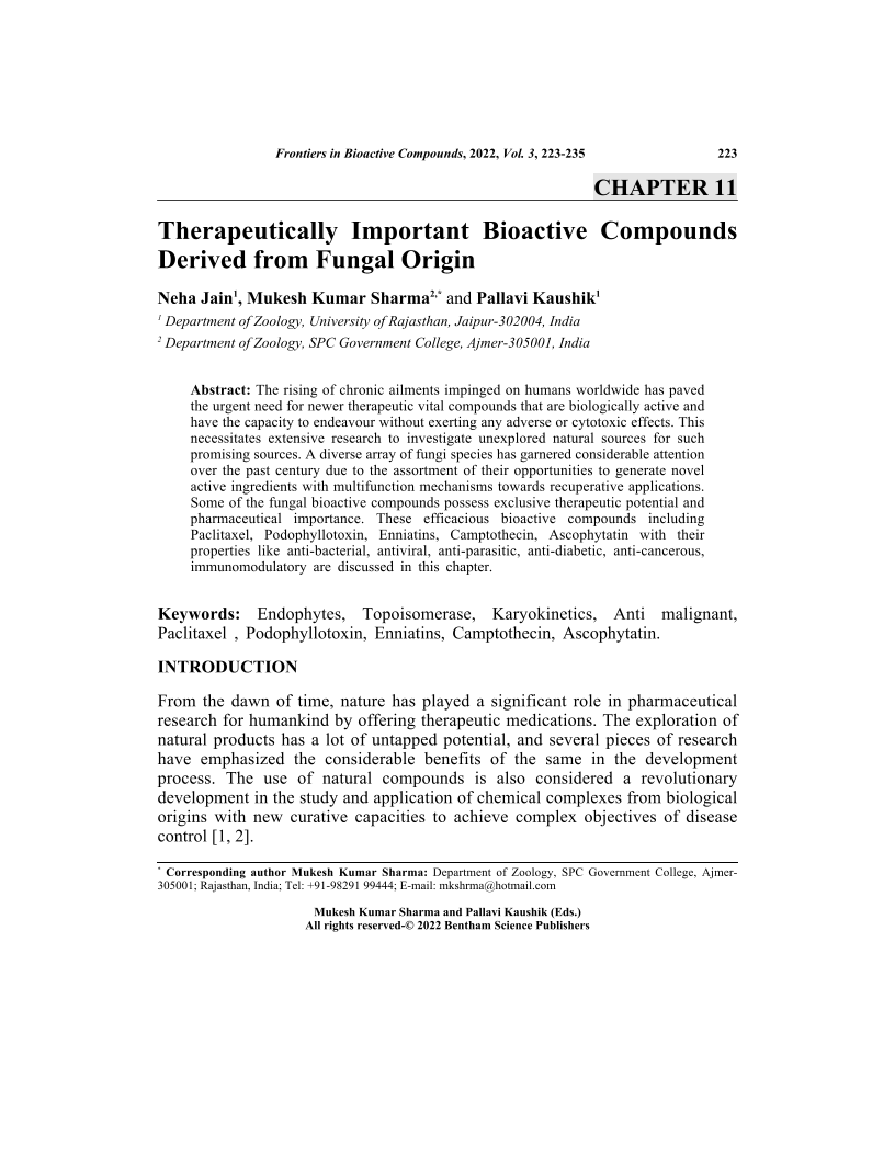 Therapeutically Important Bioactive Compounds Derived from Fungal Origin, Page 1 of 1