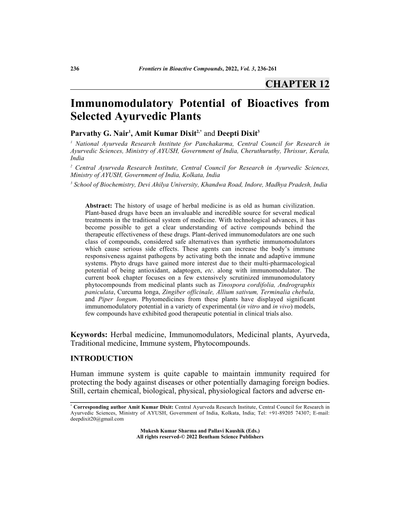Immunomodulatory Potential of Bioactives from Selected Ayurvedic Plants, Page 1 of 1