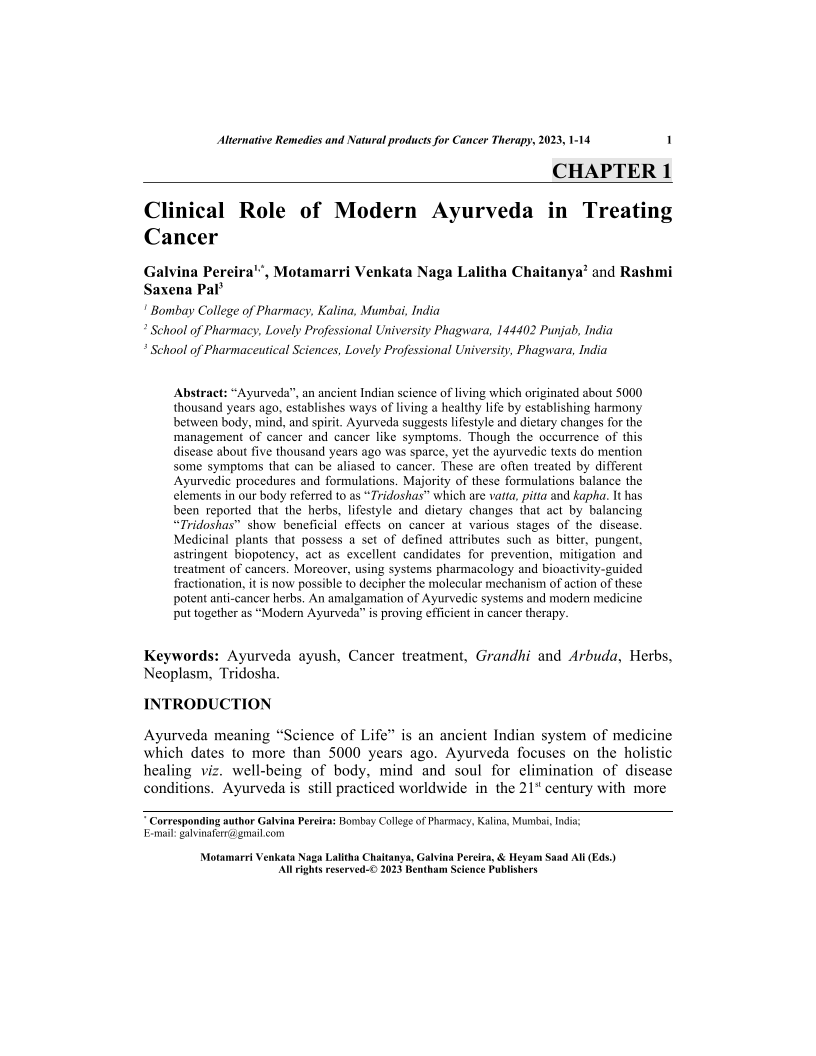 Clinical Role of Modern Ayurveda in Treating Cancer, Page 1 of 1