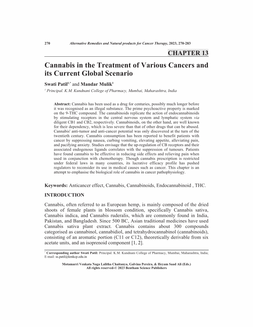 Cannabis in the Treatment of Various Cancers and its Current Global Scenario, Page 1 of 1