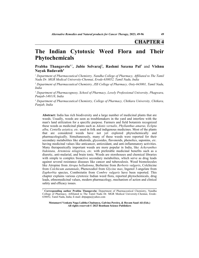 The Indian Cytotoxic Weed Flora and Their Phytochemicals, Page 1 of 1