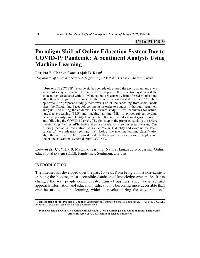 Paradigm Shift of Online Education System Due to COVID-19 Pandemic: A Sentiment Analysis Using Machine Learning, Page 1 of 1