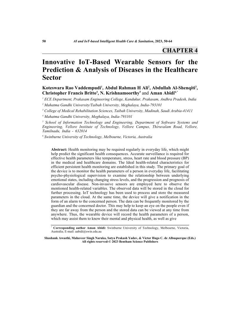 Innovative IoT-Based Wearable Sensors for the Prediction & Analysis of Diseases in the Healthcare Sector, Page 1 of 1