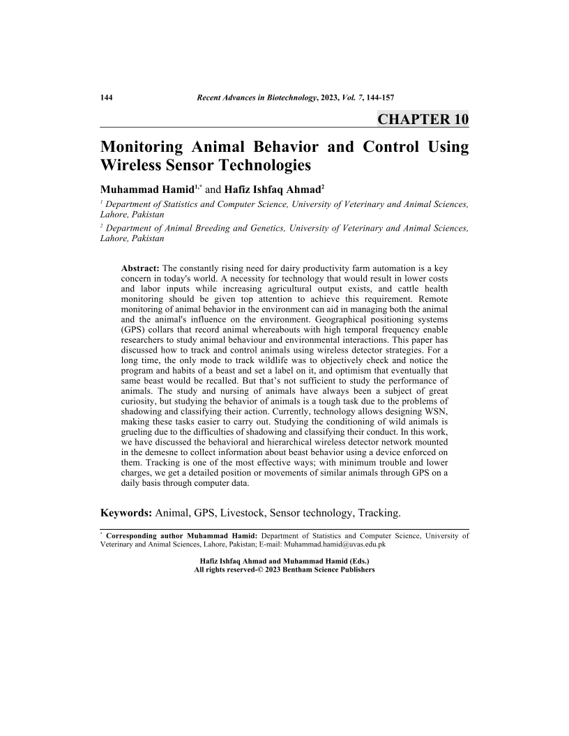 Monitoring Animal Behavior and Control Using Wireless Sensor Technologies, Page 1 of 1