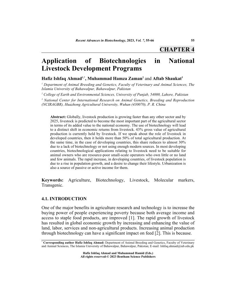 Application of Biotechnologies in National Livestock Development Programs, Page 1 of 1