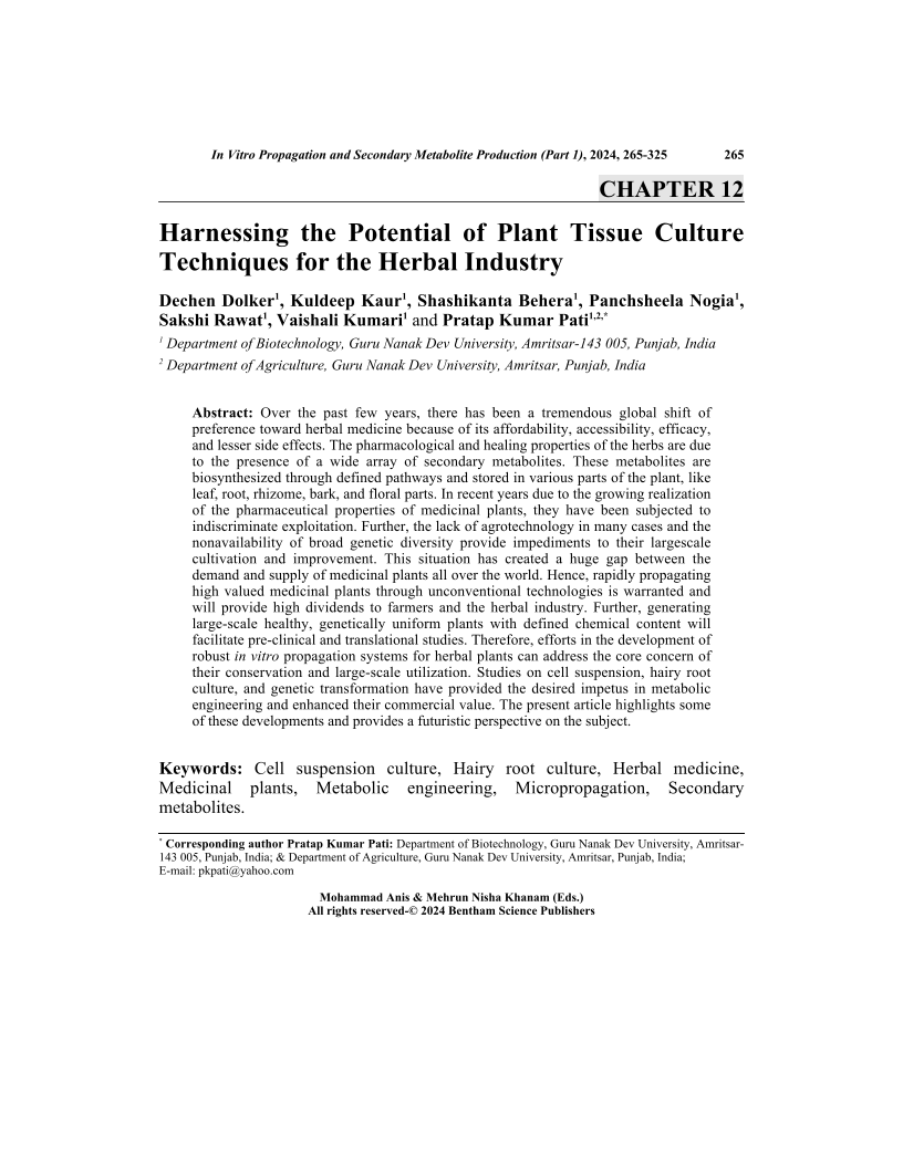 - Source: In Vitro Propagation and Secondary Metabolite Production from Medicinal Plants: Current Trends (Part 1) , pp 265-325