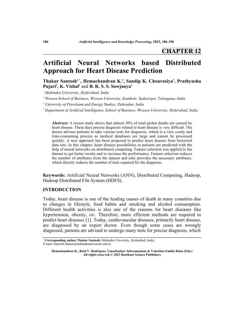 Artificial Neural Networks based Distributed Approach for Heart Disease Prediction, Page 1 of 1