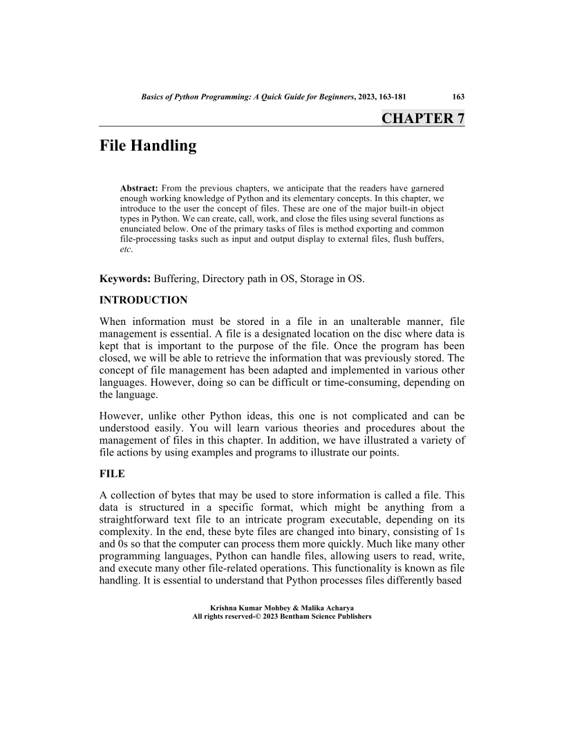 - Source: Basics of Python Programming: A Quick Guide for Beginners , pp 163-181