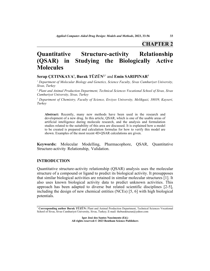 Quantitative Structure-activity Relationship (QSAR) in Studying the Biologically Active Molecules, Page 1 of 1