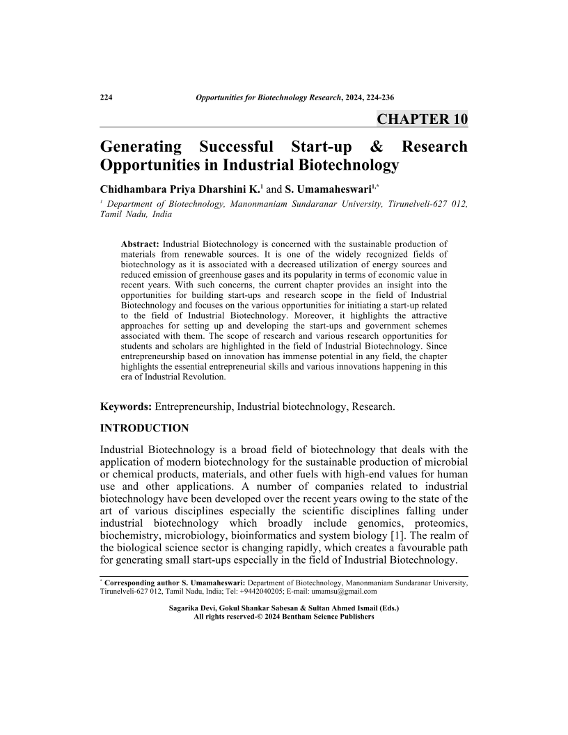 - Source: Opportunities for Biotechnology Research and Entrepreneurship , pp 224-236