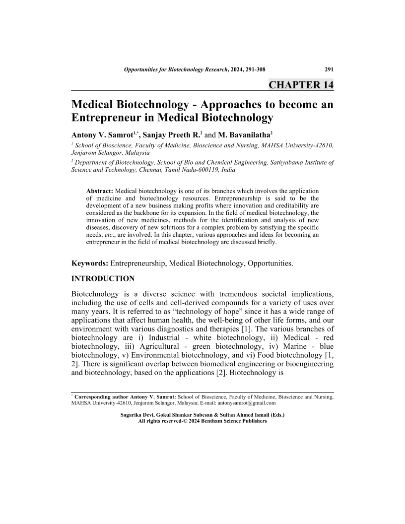 Medical Biotechnology - Approaches to become an Entrepreneur in Medical Biotechnology, Page 1 of 1