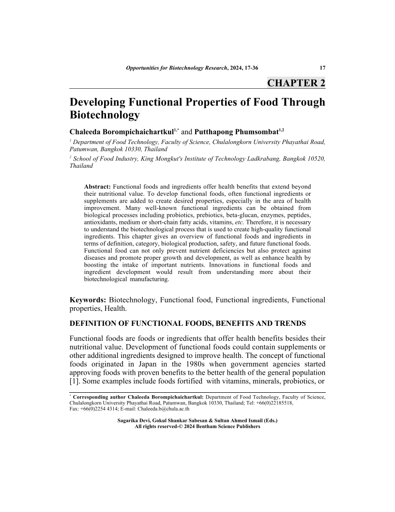 Developing Functional Properties of Food Through Biotechnology, Page 1 of 1