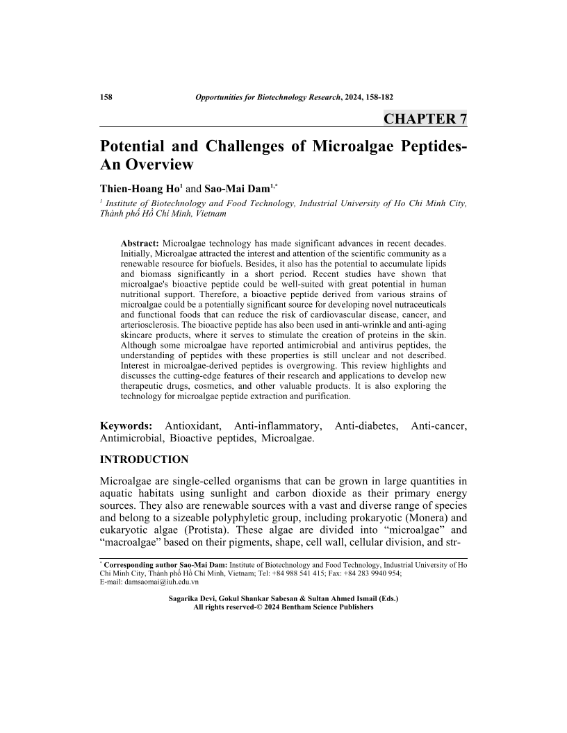 Potential and Challenges of Microalgae Peptides-An Overview, Page 1 of 1