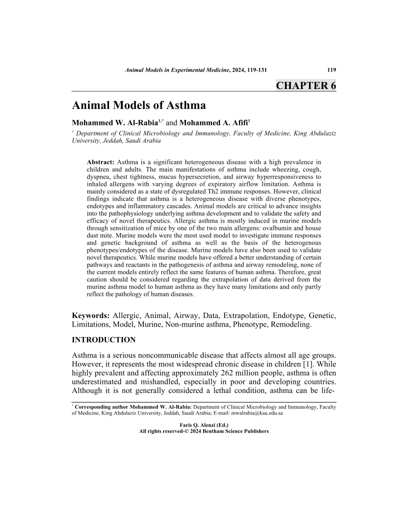 Animal Models of Asthma, Page 1 of 1