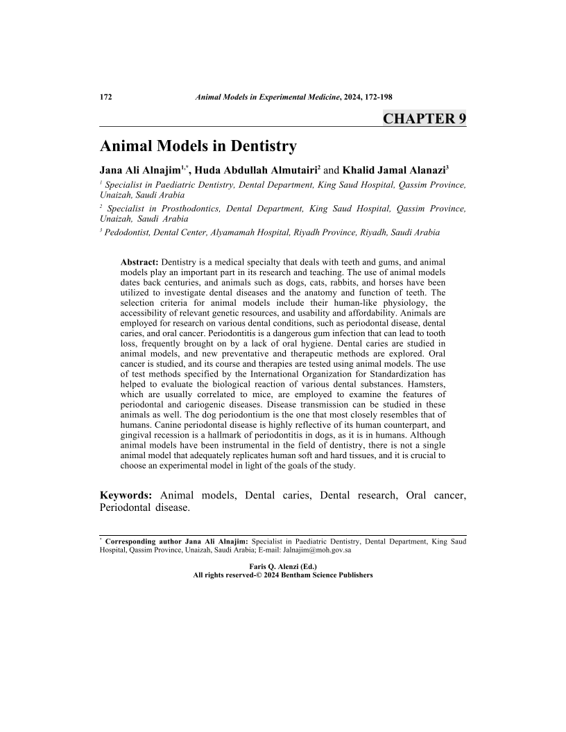 Animal Models in Dentistry, Page 1 of 1