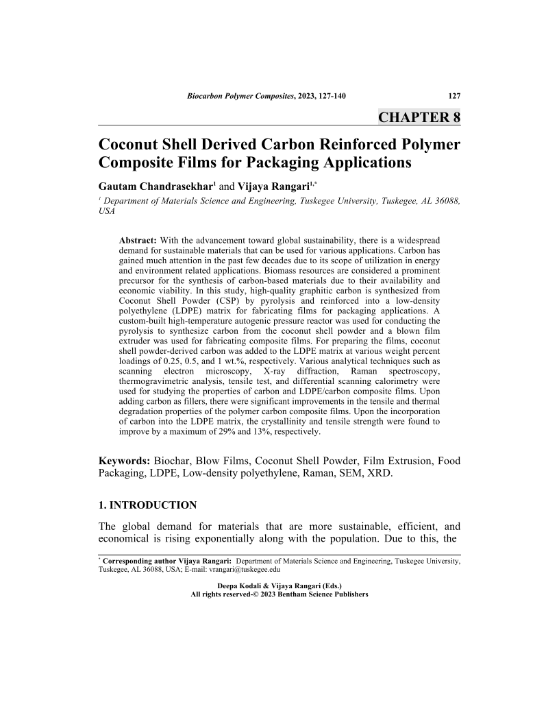 Coconut Shell Derived Carbon Reinforced Polymer Composite Films for Packaging Applications, Page 1 of 1
