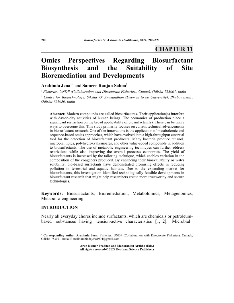 Omics Perspectives Regarding Biosurfactant Biosynthesis and the Suitability of Site Bioremediation and Developments, Page 1 of 1