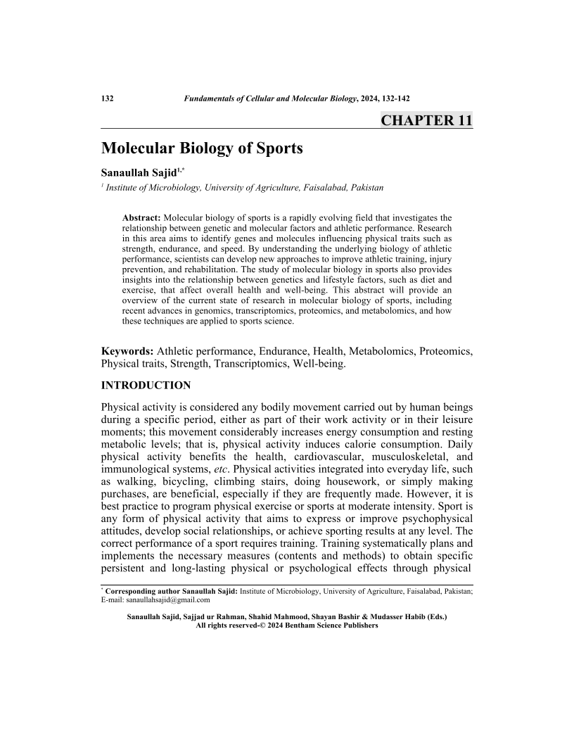 Molecular biology of sports is a rapidly evolving field that investigates the relationship between genetic and molecular factors and athletic performance. Research in this area aims to identify genes and molecules influencing physical traits such as strength, endurance, and speed. By understanding the underlying biology of athletic performance, scientists can develop new approaches to improve athletic training, injury prevention, and rehabilitation. The study of molecular biology in sports also provides insights into the relationship between genetics and lifestyle factors, such as diet and exercise, that affect overall health and well-being. This abstract will provide an overview of the current state of research in molecular biology of sports, including recent advances in genomics, transcriptomics, proteomics, and metabolomics, and how these techniques are applied to sports science.