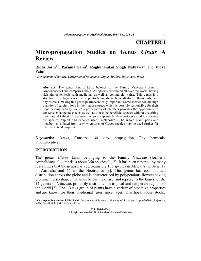 Micropropagation Studies on Genus Cissus A Review, Page 1 of 1