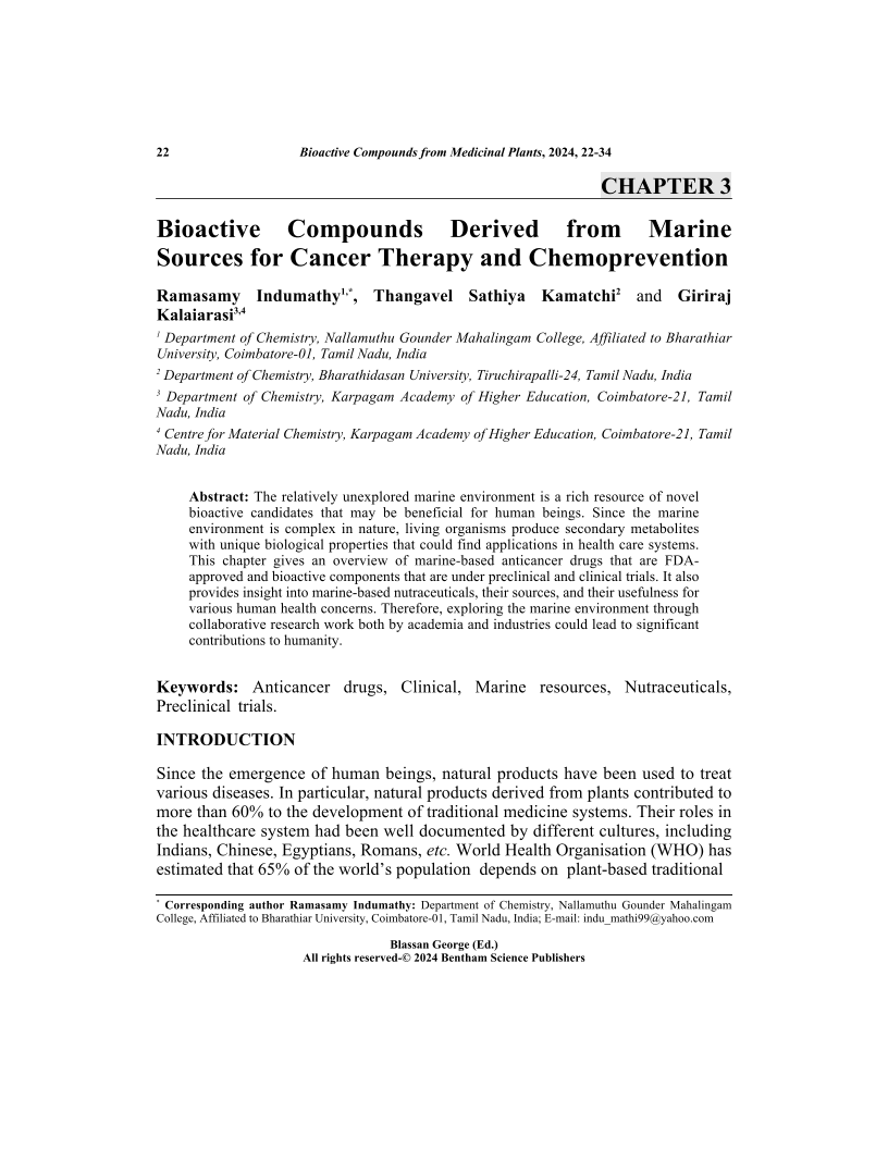 - Source: Bioactive Compounds from Medicinal Plants for Cancer Therapy and Chemoprevention , pp 22-34