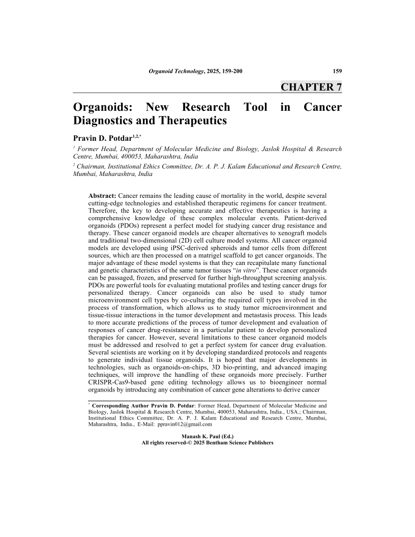 Organoids: New Research Tool in Cancer Diagnostics and Therapeutics, Page 1 of 1