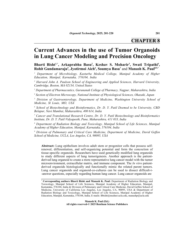 Current Advances in the use of Tumor Organoids in Lung Cancer Modeling and Precision Oncology, Page 1 of 1