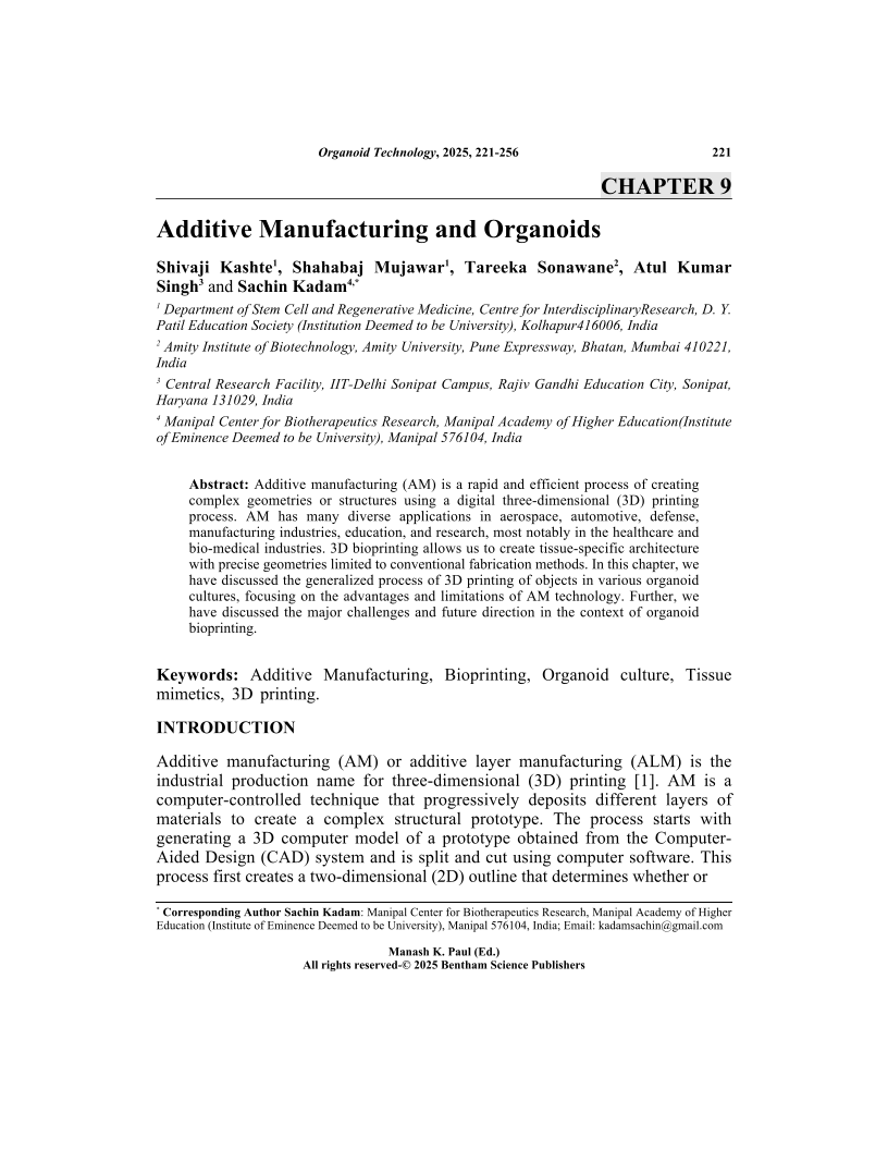 View Affiliations Hide Affiliations1 Department of Stem Cell and Regenerative Medicine, Centre for InterdisciplinaryResearch, D. Y. Patil Education Society (Institution Deemed to be University), Kolhapur416006, India 2 Department of Stem Cell and Regenerative Medicine, Centre for InterdisciplinaryResearch, D. Y. Patil Education Society (Institution Deemed to be University), Kolhapur416006, India 3 Amity Institute of Biotechnology, Amity University, Pune Expressway, Bhatan, Mumbai 410221, India 4 Central Research Facility, IIT Delhi Sonipat Campus, Rajiv Gandhi Education City, Sonipat, Haryana 131029, India 5 Manipal Center for Biotherapeutics Research, Manipal Academy of Higher Education(Institute of Eminence Deemed to be University), Manipal 576104, India
