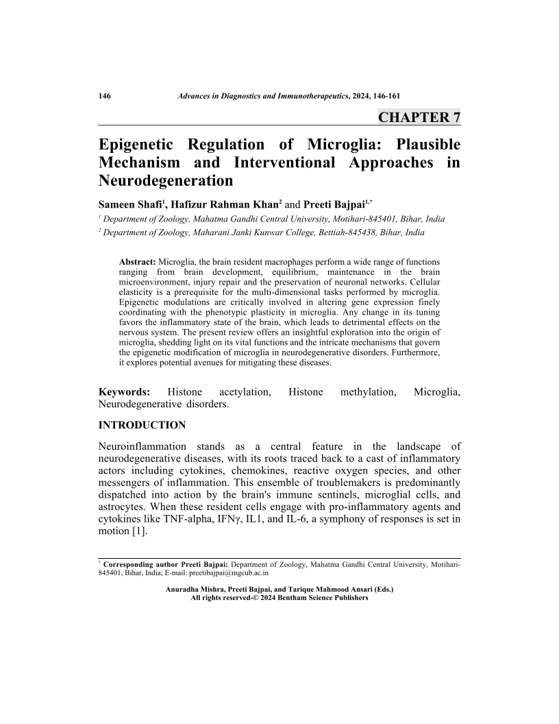 Epigenetic Regulation of Microglia: Plausible Mechanism and Interventional Approaches in Neurodegeneration, Page 1 of 1