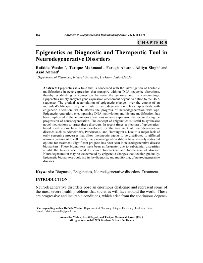 - Source: Advances in Diagnostics and Immunotherapeutics for Neurodegenerative Diseases , pp 162-176