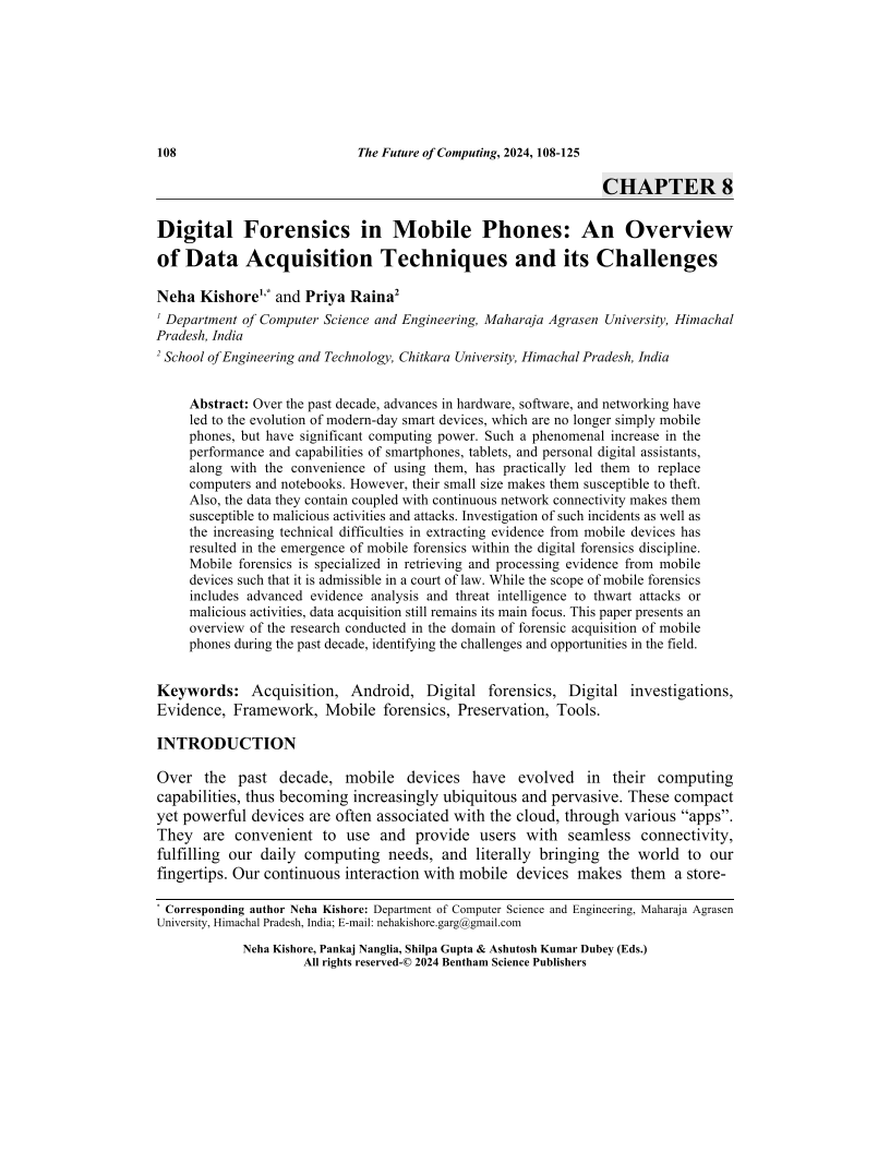 Digital Forensics in Mobile Phones: An Overview of Data Acquisition Techniques and its Challenges, Page 1 of 1