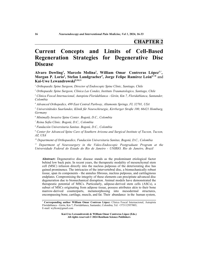 Current Concepts and Limits of Cell-Based Regeneration Strategies for Degenerative Disc Disease, Page 1 of 1