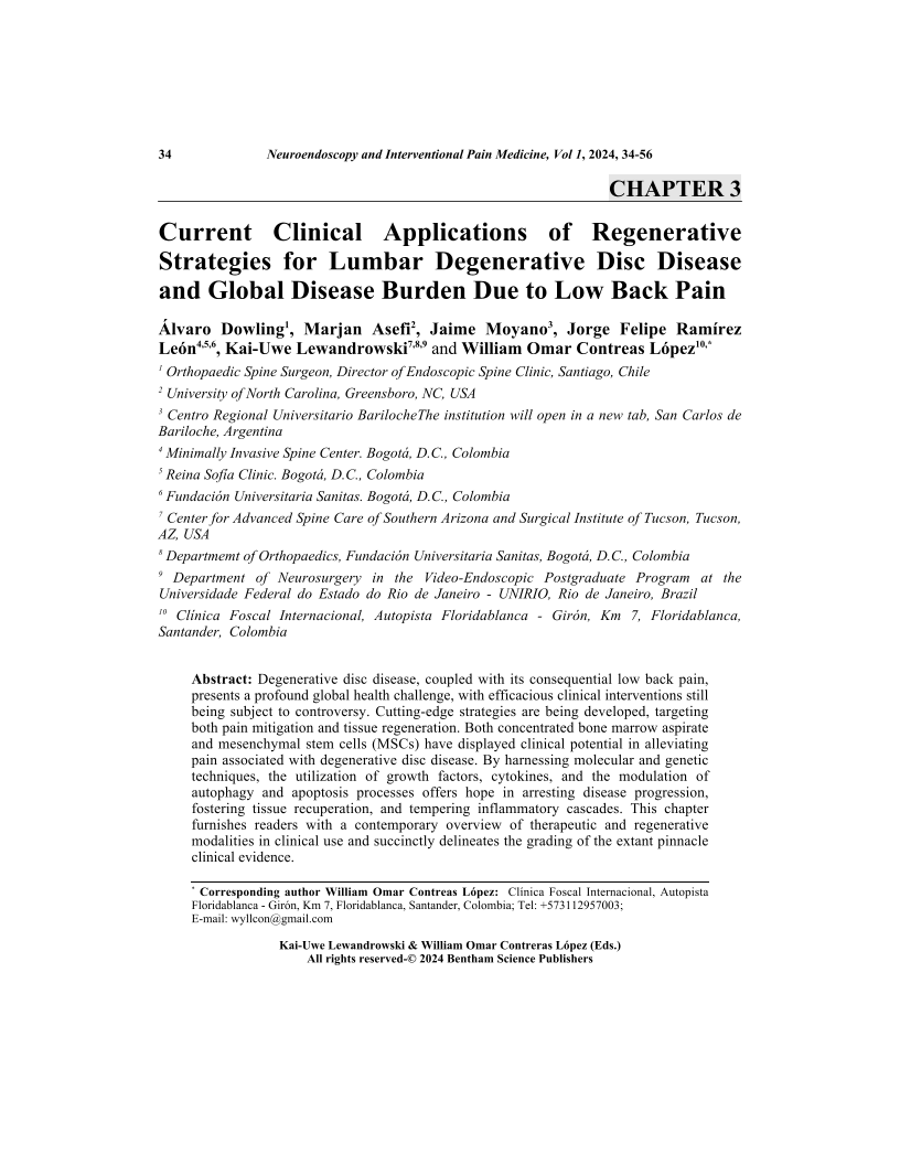 Current Clinical Applications of Regenerative Strategies for Lumbar Degenerative Disc Disease and Global Disease Burden Due to Low Back Pain, Page 1 of 1