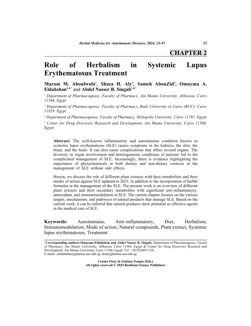 Role of Herbalism in Systemic Lupus Erythematosus Treatment, Page 1 of 1