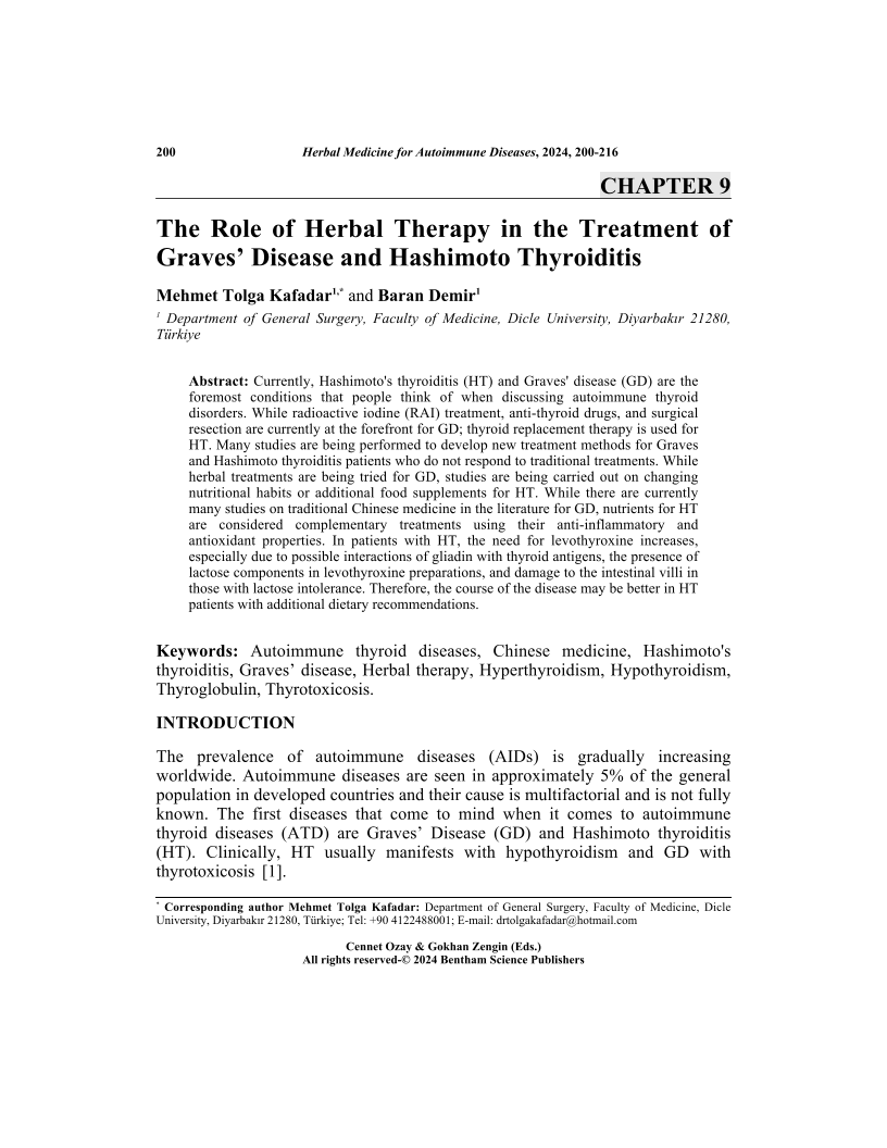 The Role of Herbal Therapy in the Treatment of Graves Disease and Hashimoto Thyroiditis, Page 1 of 1