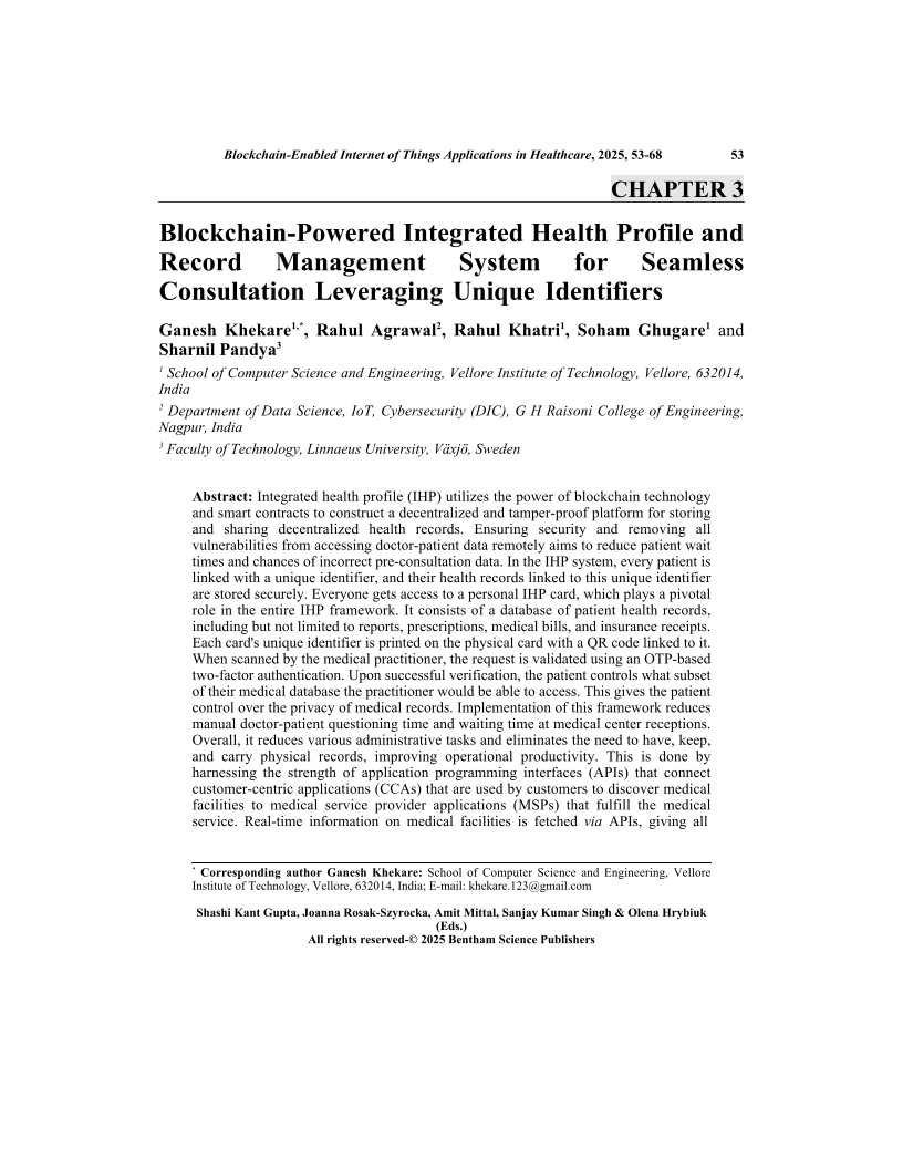 Blockchain-Powered Integrated Health Profile and Record Management System for Seamless Consultation Leveraging Unique Identifiers, Page 1 of 1
