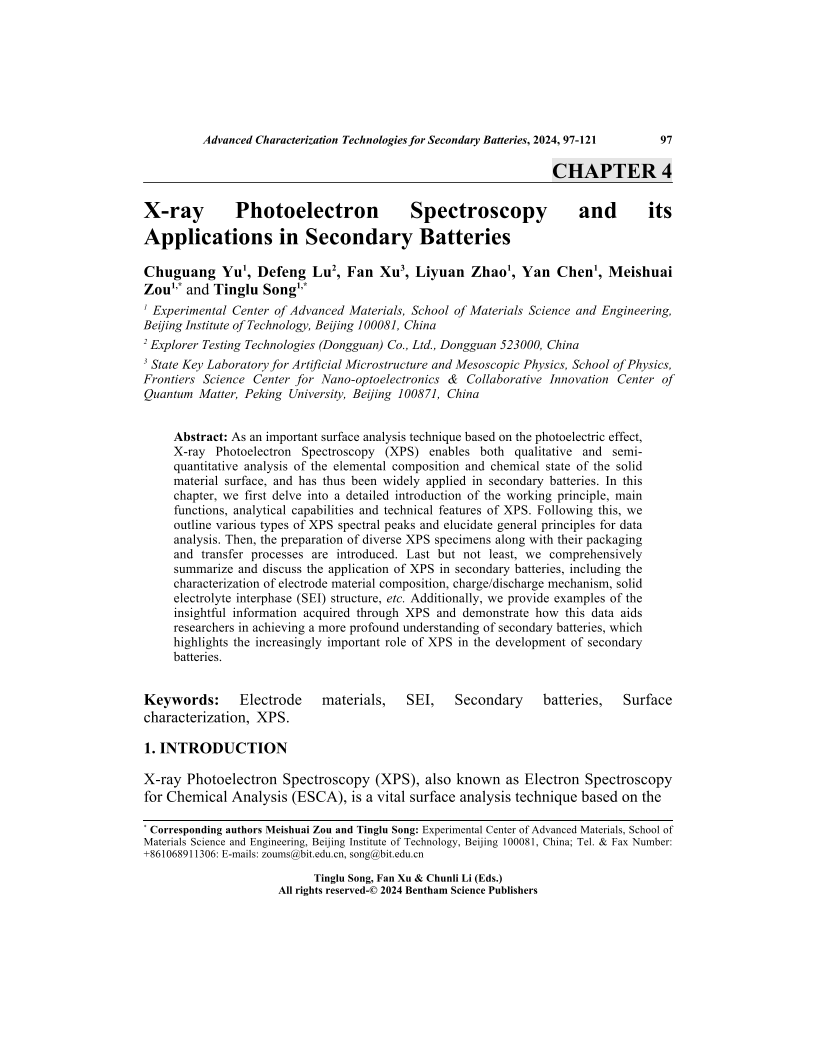 X-ray Photoelectron Spectroscopy and its Applications in Secondary Batteries, Page 1 of 1