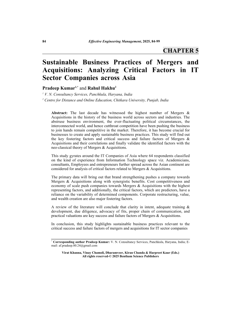Sustainable Business Practices of Mergers and Acquisitions: Analyzing Critical Factors in IT Sector Companies across Asia, Page 1 of 1