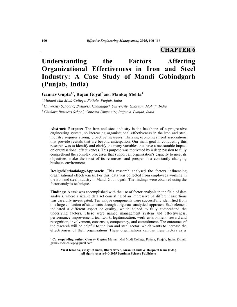 Understanding the Factors Affecting Organizational Effectiveness in Iron and Steel Industry: A Case Study of Mandi Gobindgarh (Punjab, India), Page 1 of 1